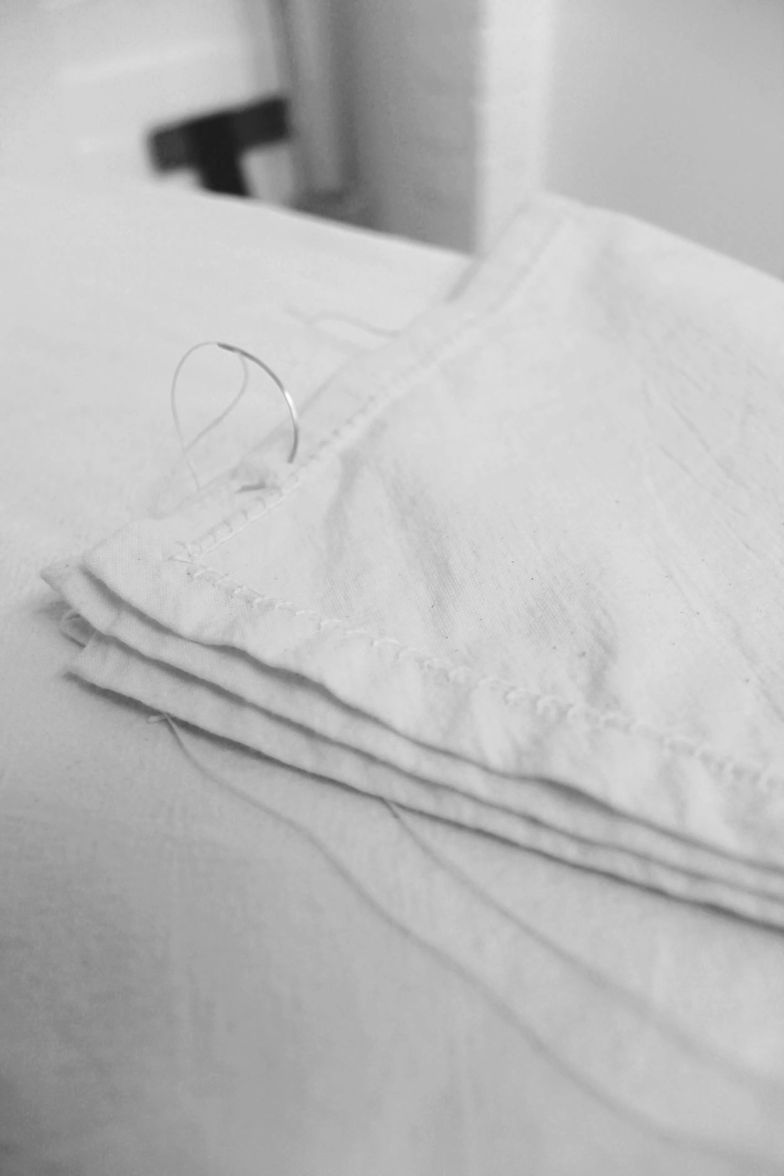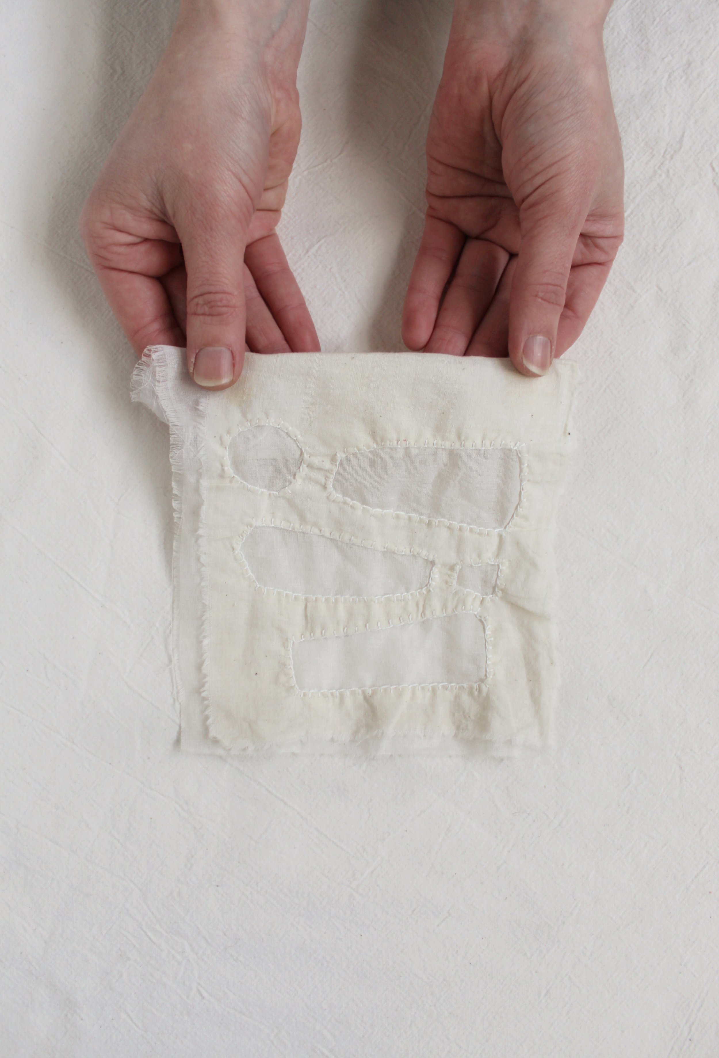Reverse appliqué w/ linen thread.